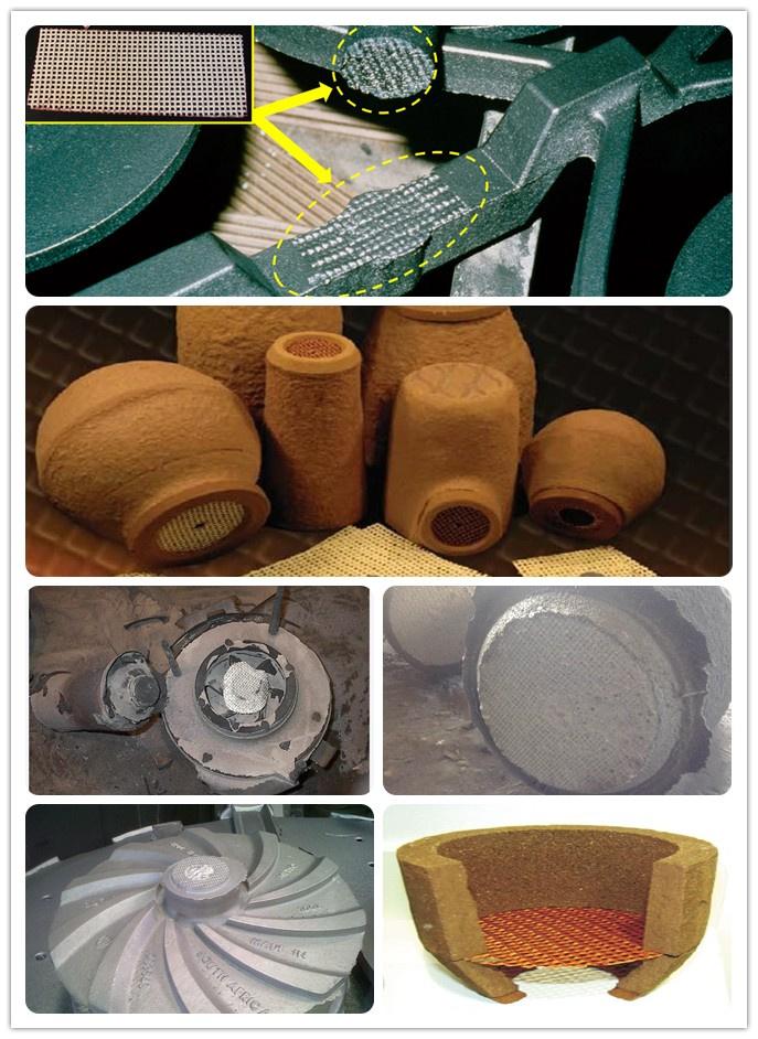 5、纖維網(wǎng)不改變金屬液成分,帶有纖維網(wǎng)的澆冒口可直接回爐重熔,同時(shí)回爐后網(wǎng)片浮在金屬液表面,易于去除